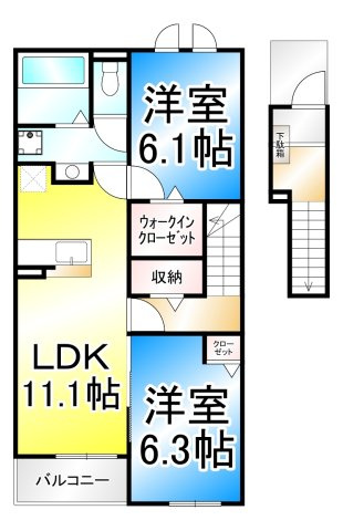 LDK 11.1帖/洋室 6.3帖/洋室 6.1帖
