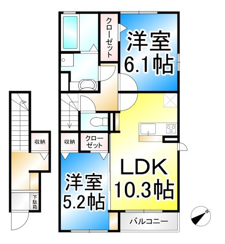 LDK 10.6帖/洋室 6.1帖 - 向き