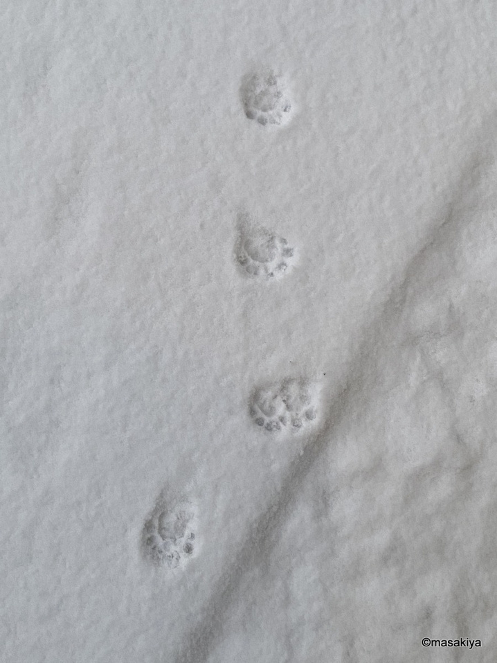 足跡 正木屋日記 2021.01.14 #正木屋日記 #ネコ 我が家の前に足跡が。。。冷たそうですね。。。うちのネコのものではありません。その頃、我が家の猫は、こんな感じで寛いでおります。雪の上、歩いたらどうなるんでしょうかね。。。 next 机の上 2021.01.15