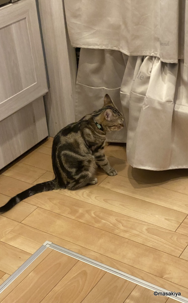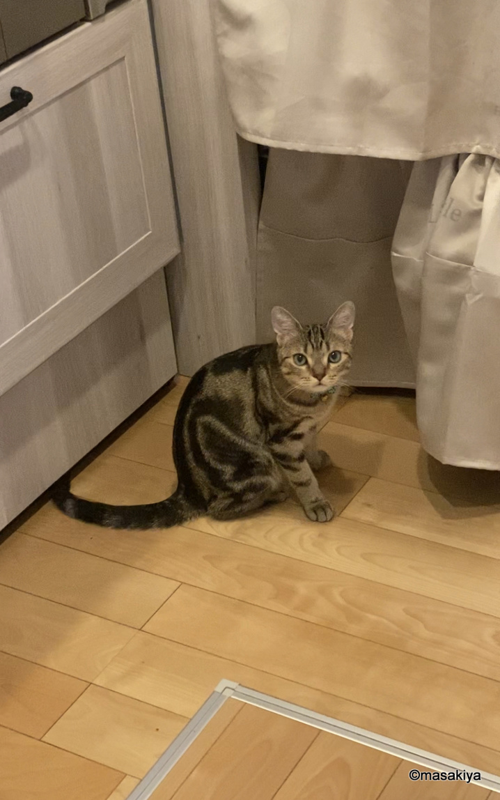 お腹をすかせたネコ 正木屋日記 2021.08.09 #正木屋日記 #ネコ 朝、ちょっと遅く起きると、台所で待っておりました。しばらく放って置いて、洗面所から帰ってくると、自らなんとかしようと頑張っておりました。こんな顔されても、私はご飯係ではないので、我慢してもらうしかありません。不満気です。この暑いのに、ネコの食欲が止まりません。元気ですね。。。 next お腹をすかせたネコ2 2021.08.10