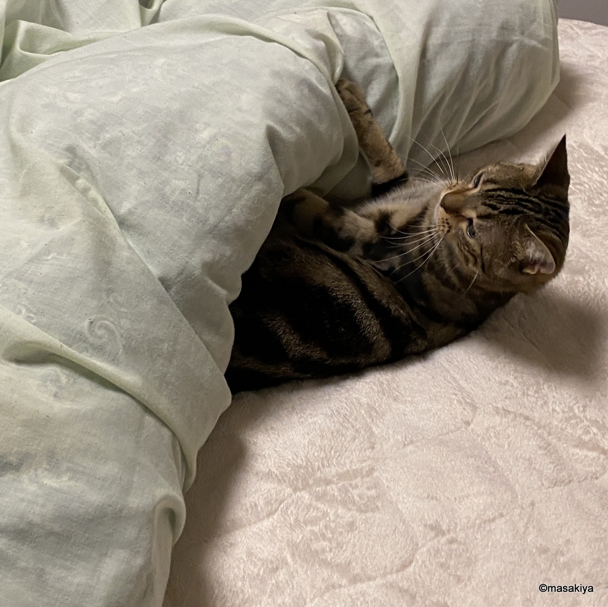 ホットカーペットの季節 正木屋日記 2021.10.30 #正木屋日記 #ネコ シーツの下にホットカーペットが敷いてあり、暖かくしてあげると、あっという間にこんな感じです。小一時間程、こんな感じになってしまうので結構困ります。人間が寝たくても寝られません。日頃、荒ぶっているネコとは思えない程の穏やかな表情です。お布団をかけてあげましたが、こういうのに慣れていないのか、暑すぎるのか、嫌がります。まあ、毛がいっぱい生えているから必要ないんでしょうね。 next 敷地内に井戸がある不動産の売却で押さえておきたいポイントを解説 2021.10.31