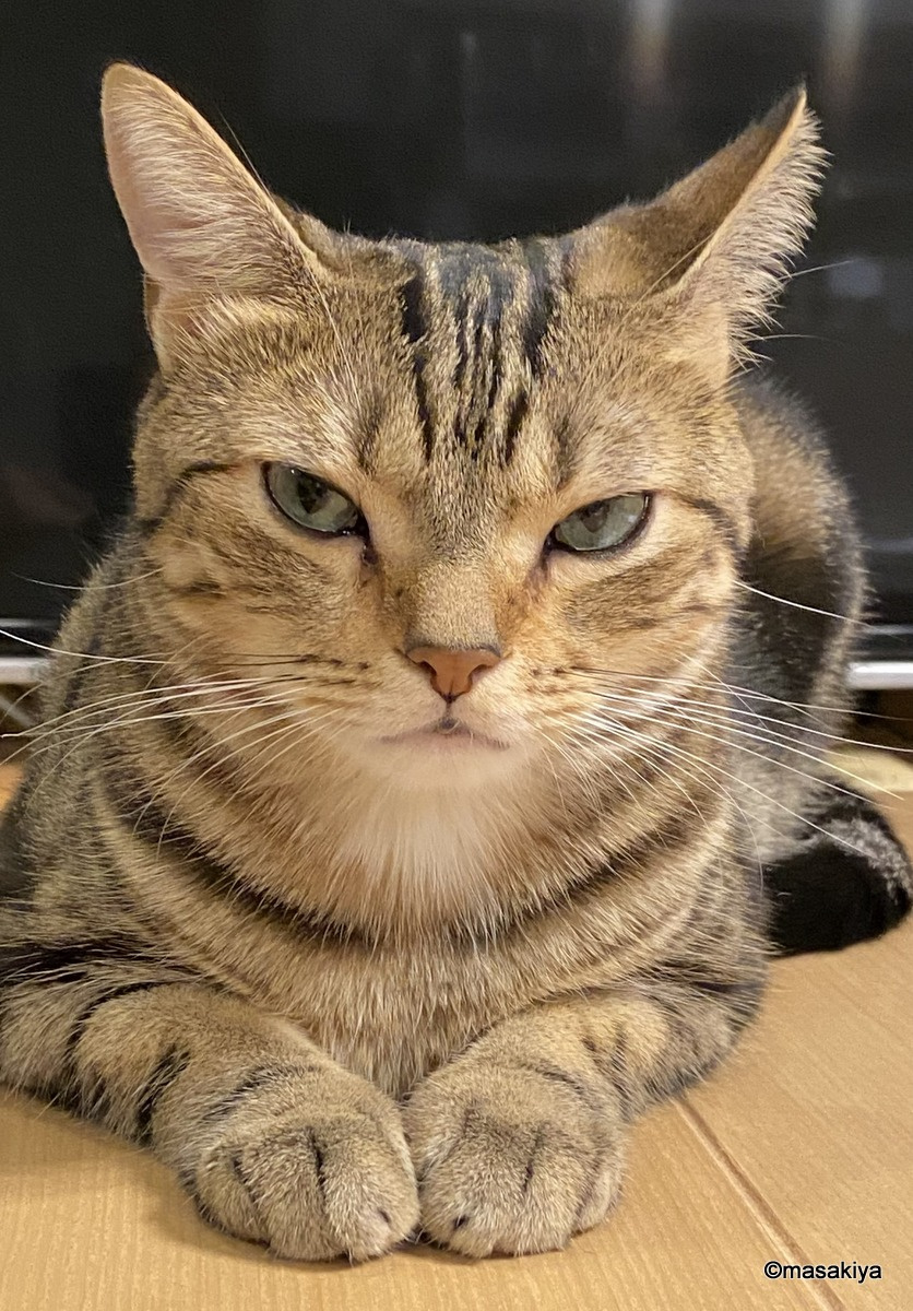 手伝えないネコ 正木屋日記 2022.09.29 #正木屋日記 #ネコ 私が出かけるのを見張っているネコです。前足が大変ネコらしいです。いつも通り、険しい表情をしております。最近お陰様でなんだかとっても忙しく、ネコに手伝ってもらいたいですが、このクリームパンみたいな前足では無理でしょう。せめて、駐車場にある幟旗の交換くらいしてくれたら助かりますが、何せクリームパンですので。。。早起きして頑張るしかありません。 next 厳戒態勢 2022.09.30
