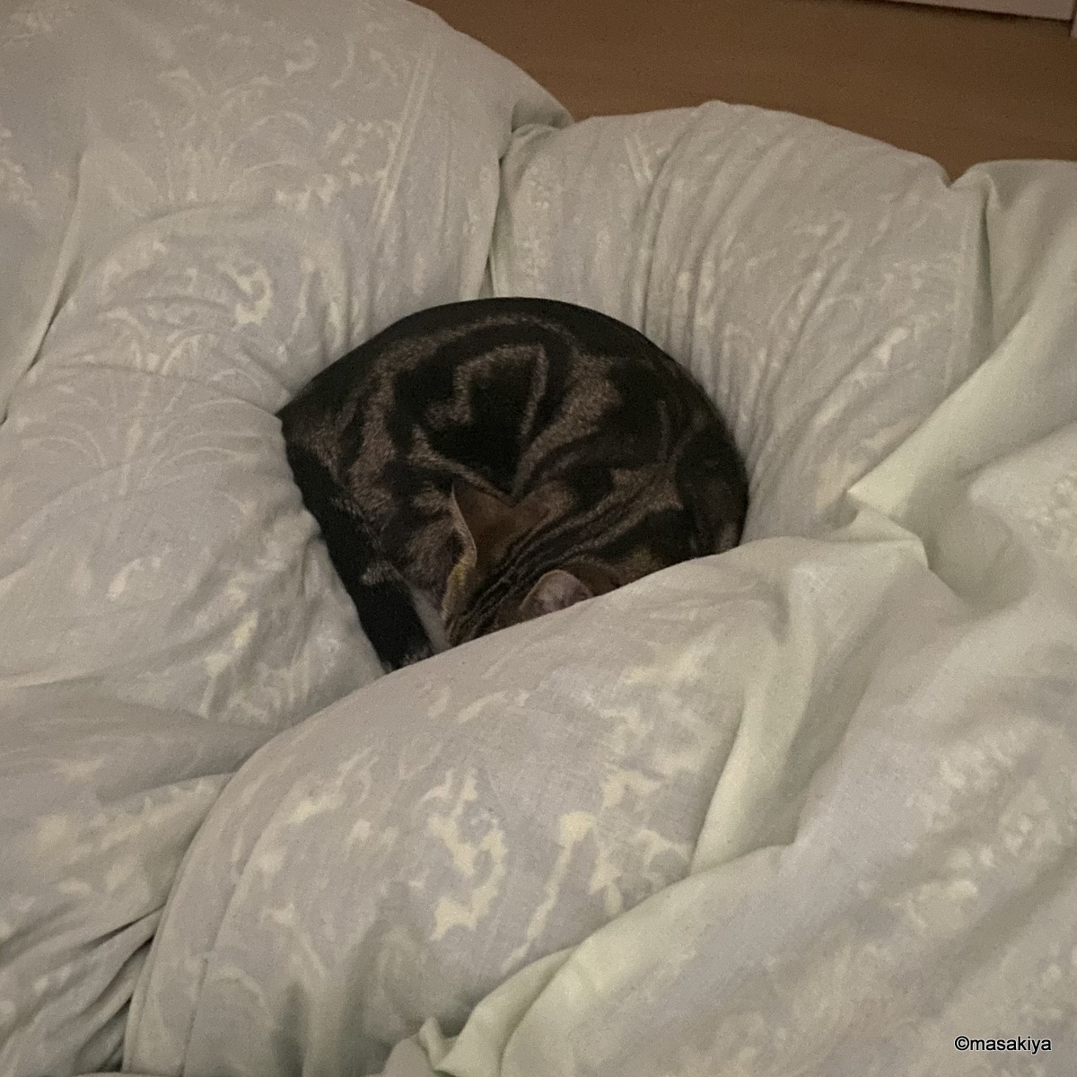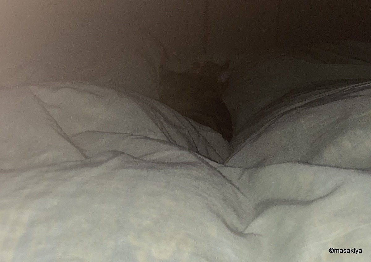 昨日はどういうわけか、朝まで私の布団の上で寝ておりました。