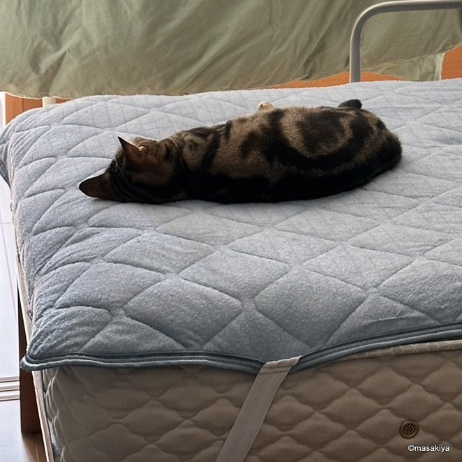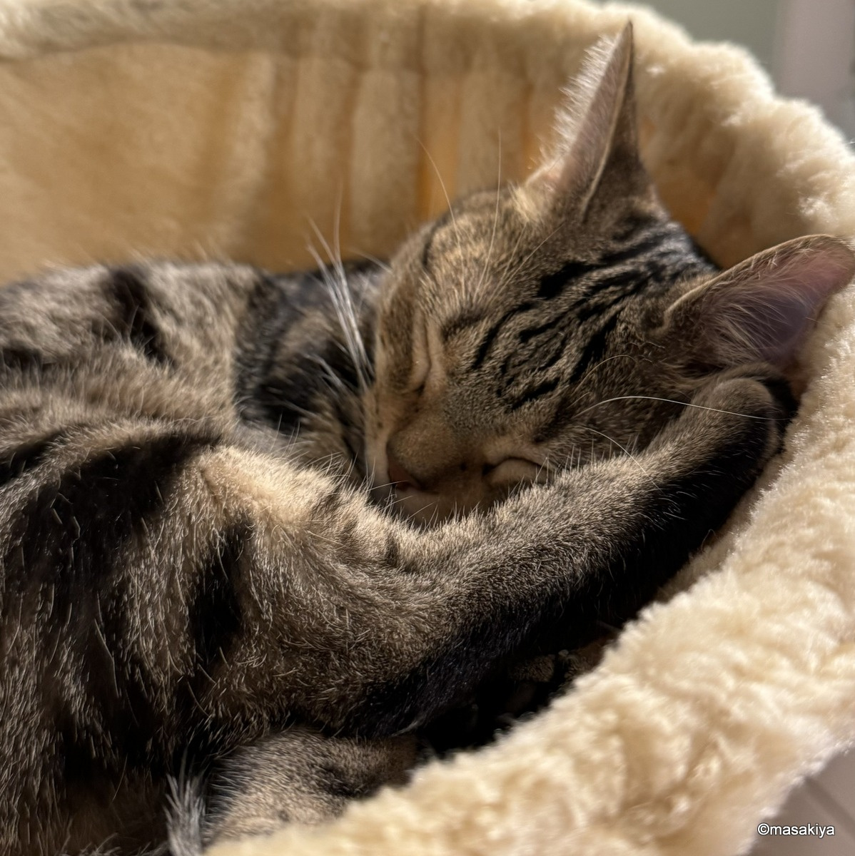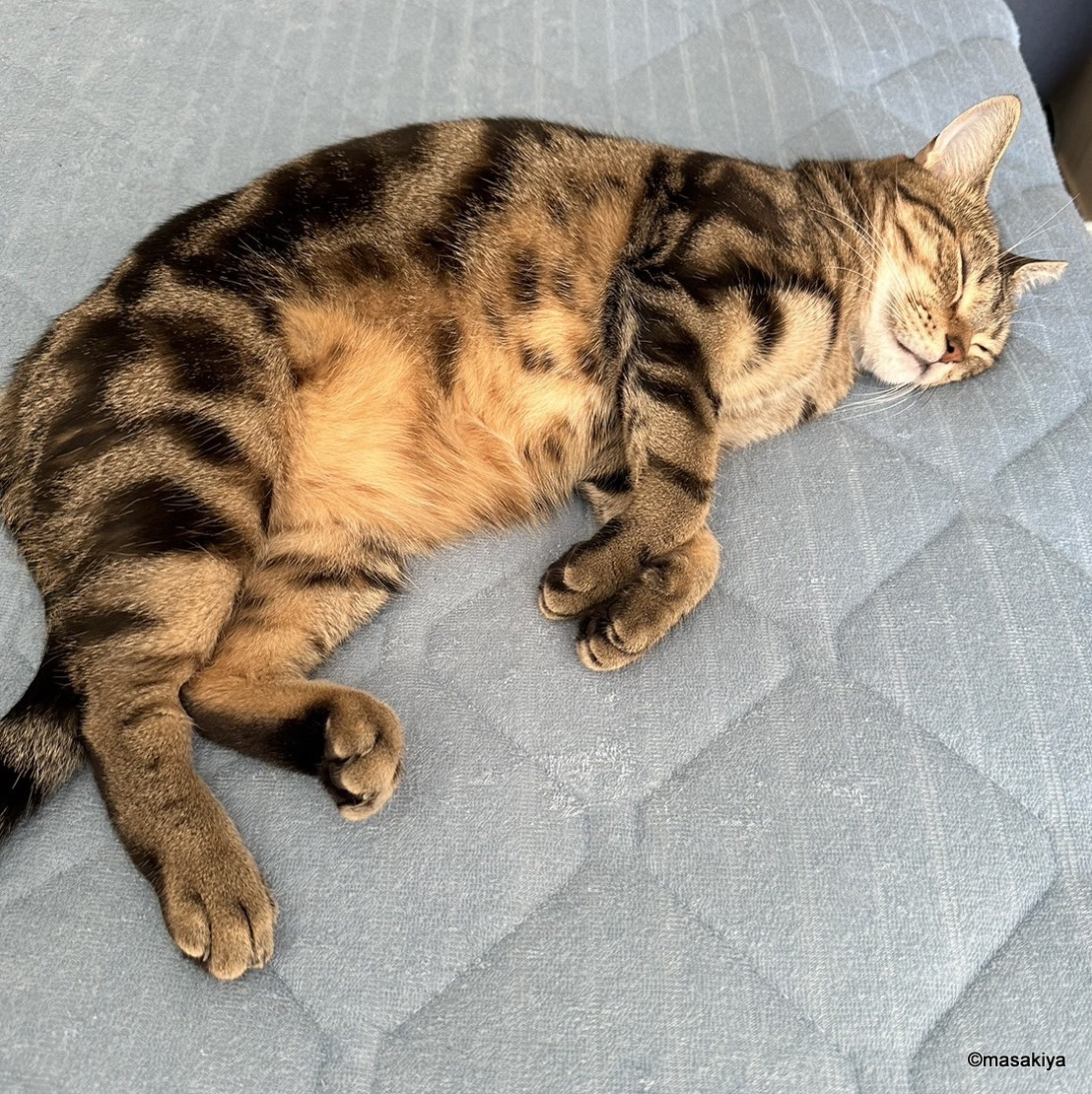 お昼寝 正木屋日記 2023.10.20 #正木屋日記 #ネコ 人間よりも先にお昼寝中のネコです。ホントによく寝ます。こんなに丸まって、ちゃんと寝られるのでしょうか。今朝、リビングに降りていったら、仲良く寝ておりました。もっと広いところがたくさんあるので、そこで寝たほうが体が伸びていいと思いますが、そうではないようです。 next パンチ 2023.10.21