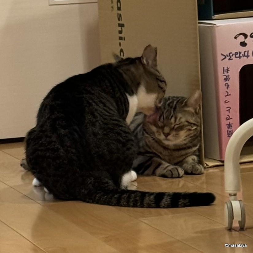 先住猫はコロコロ(粘着テープ)は大好きなのですが、保護猫に舐められると激怒します。
